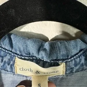 Cloth&Stone Roll Tab Sleeve Blue Tencel Button Up Shirt denim chambray tribal