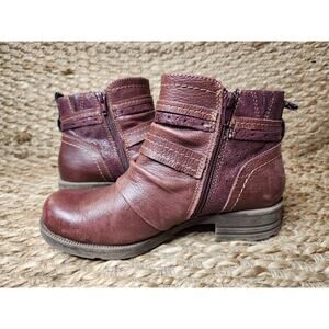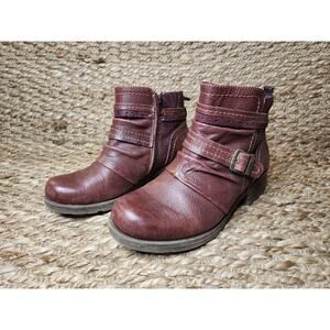 Earth Origins Randi Roland Red Leather Ankle Moto Boots Bootie Womens 7.5 Wide
