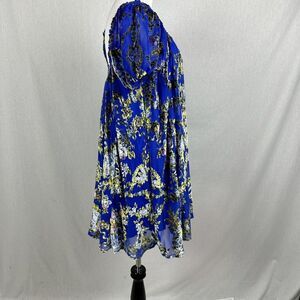 Free people beautiful blooms short sleeve mini dress. elastic smocked top can be worn off the shoulder or on. Blue with burnout velvet floral detailing. boho puff sleeve, babydoll style.