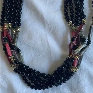 Vintage multi-stranded necklace, excellent condition. About 15 inches from top to bottom of necklace