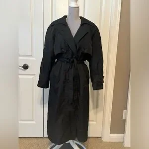 Vintage 70’s 80’s John Weitz Black Lined zip out Rain Trench Coat Sz 8