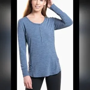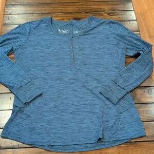 henley style long sleeve with a thermal/waffle insets on sides and back