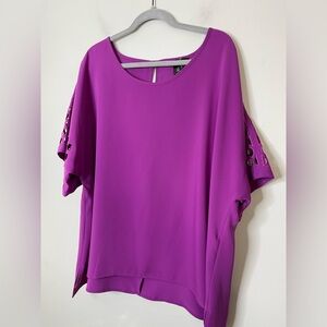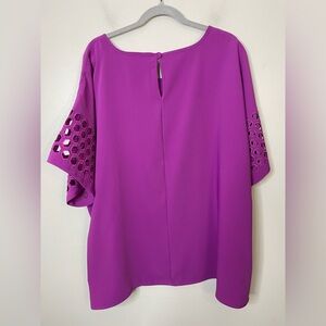 Ali Miles NWOT Cutwork Quarter Sleeve Blouse Purple Top Sz 1X Round Neck Office