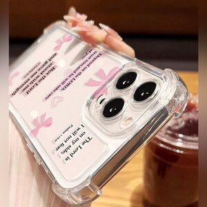 Stylish clear phone case featuring a charming pink bow design. Offers excellent protection while adding a touch of elegance to your device.