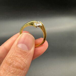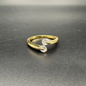Vintage Ring Gold Tone Two White Rhinestones Retro Modern About Size 7.5