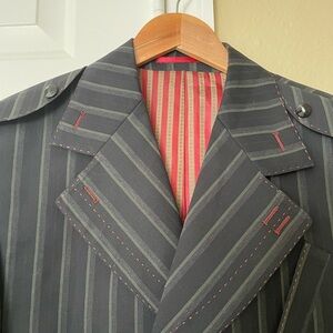 Elegant Valentino jacket with red and tan stripes. Ideal for sophisticated events.
