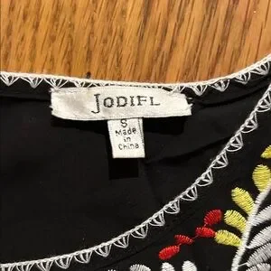 JODIFL Black Dress with Colorful Embroidery