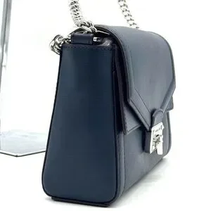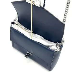 Michael Kors Kinsley leather Medium Shoulder Flap Crossbody Bag Navy Blue