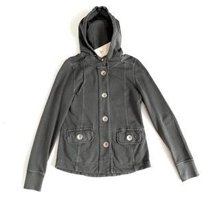 Prana Gray Janelle Button Front Hoodie Jacket Organic Cotton Sweatshirt