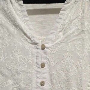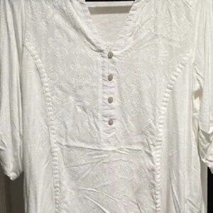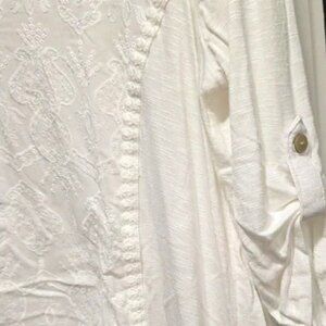 NEW Democracy White Blouse Embroidered Roll Tab Sleeve Shirt Top Size M NWT