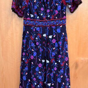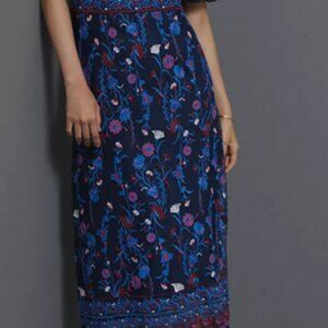 This Anthropologie Mehreen Maxi Dress showcases a captivating blend of blue and red hues, perfect for making a statement. Its flowing silhouette offers both comfort and elegance, ideal for any special occasion. The dress's vibrant colors and graceful design ensure you stand out effortlessly.