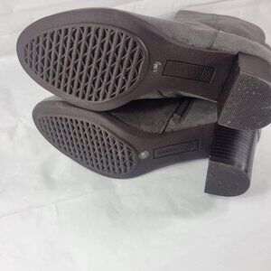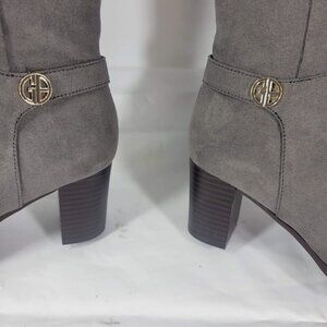 Giani Bernini Women Size 5.5M Adonnys Boots Knee High Gray Block Heel Zip Logo Trim. New, scratch on heel and mark on toe area.