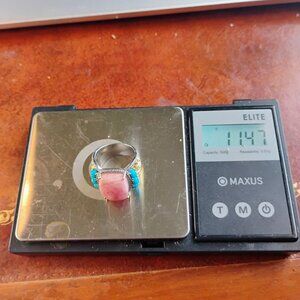 KRH India 925 Sterling Silver Pink Rhodochrosite & Turquoise Ring Size 6