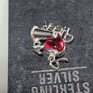 JCF Signed 925 Marked Red Rhinestone Heart Cheer Charm Sterling Silver Nwt