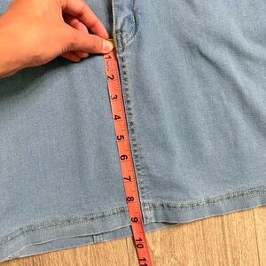 No-tag denim mini dress with a flattering bustier-style top and button-up front. Strapless design with belt loops, functional pockets, and a snug, curve-hugging fit. Perfect for Y2K, vintage-inspired, or festival looks. Worn once, no visible flaws.