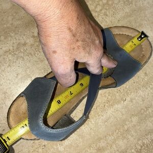 RIEKER Sandal Blue ‘Suede’ Platform Wedge, silver trim, cork-look sole. 41 EUC