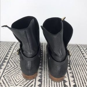 Chloe Black Leather Buckle Block Heel Ankle Boots Women Size 38, 7.5-8 Pull On