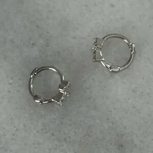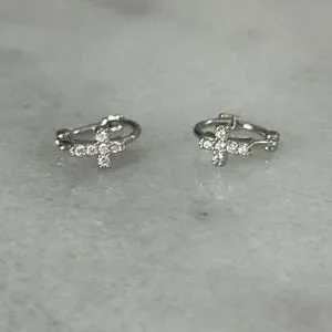 Silver Cross Crystal Small Huggie Hoop Earrings Brand New