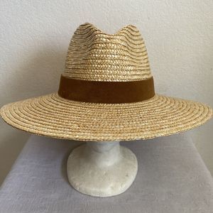 Gigi Pip Isla Sunhat Natural Straw Wide Brim Fedora Suede Band NEW (Other) OS