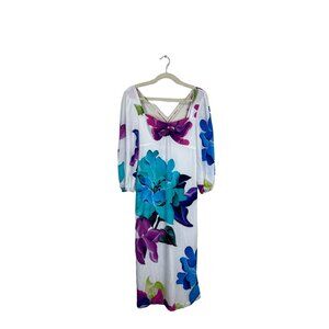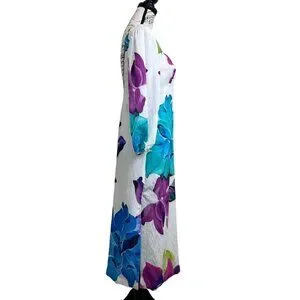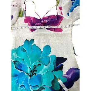 Maeve Anthropologie Women's Size 0 Dress Puff Sleeve White Purple Blue Floral