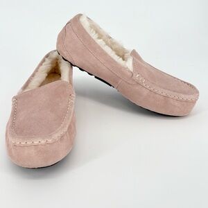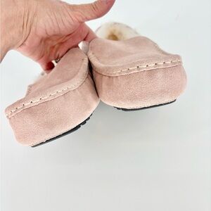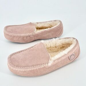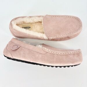 Fireside by Dearfoams Mel Genuine Shearling Moccasin in Dusty Pink