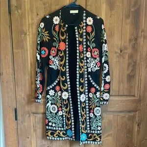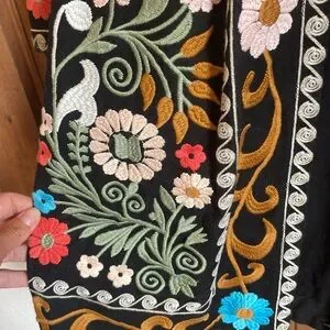 Elegant black sweater with vibrant floral embroidery. Perfect for adding a touch of color to your wardrobe. Has a nice fitted cut, light weight with quality embroidery. Size XS