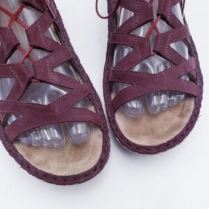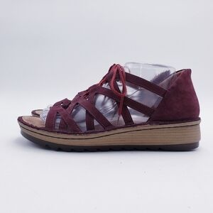 Naot Yarrow Leather Lace Up Strappy Comfort Wedge Sandal Burgundy Womens Size US 9 EU 40