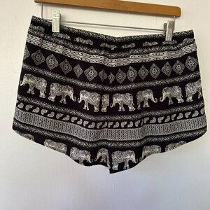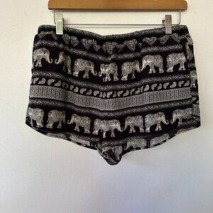 Forever 21 Pull on Shorts Womens Large Black Elephant Print Casual Lounge Shorts