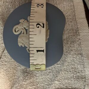 Elegant Wedgwood trinket/jewelry organizer. Features classic Jasperware blue and white chariot and horses design. Perfect for storing small treasures.