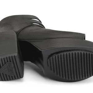 Fluevog Prepare Axe black slotted open toe platform sandal size 10.5