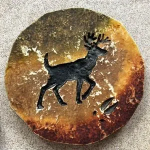 Set of two rustic coasters featuring a wildlife design. Earthy tones with a unique finish. Nice touch for a cabin or cottage. Poured resin composition from Big Sky Montana.