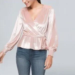luxurious look, faux wrap, trendy chic, silky feel, fancy clothing, soft pink shade, girly wholesome image, modern tunic, Instagrammble