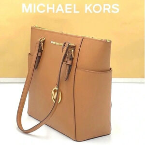 Michael Kors Large Charlotte Tote Bag Luggage Leather Luggage Brown