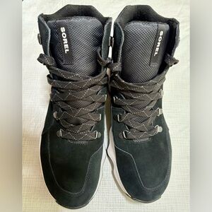 Stylish black and white boots by Sorel. Perfect for any adventure.size 10,5 ,worn once or twice excellent condition