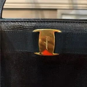 Salvatore Ferragamo Vala Vintage Black pebble Leather Tote Bag