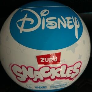 Features beloved Disney characters enjoying snacks. Bright and playful design.