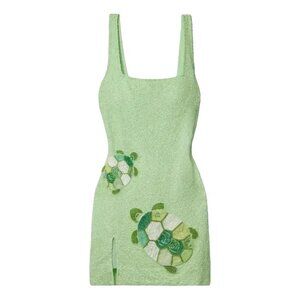 Styled with a square neck and front slit, Staud's sleeveless Le Sable minidress flaunts a whimsical beaded turtle motif.