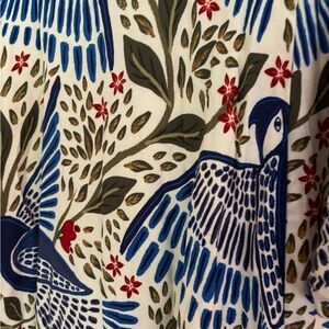 Elegant long sleeve dress with vibrant blue and white bird pattern. Features a flattering wrap design. Perfect for any occasion.