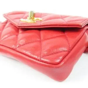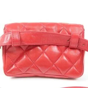Authentic CHANEL CC Vintage Matelasse Lambskin Waist Pouch Bum Bag Leather Red