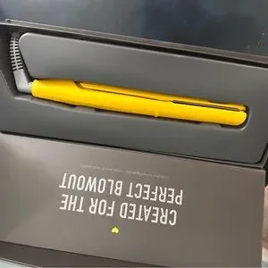 Drybar The Tress Press straightening iron. Features vibrant yellow design. Ideal for sleek, smooth hair styling. Never used, brand new in box