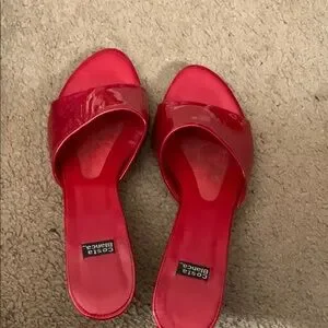 Sleek and stylish red mules. Perfect for adding a pop of color.