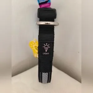 🦋2/$15 Safety LED Light & Reflective Dog Collar Black Gray Medium NWT