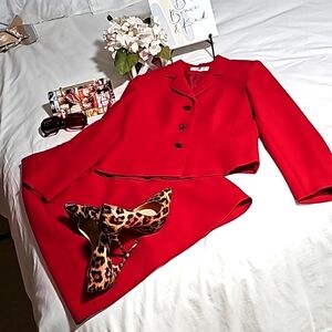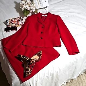 LeSuit Women's 2PC Blazer and Skirt Red Suit Sets,Size 6P