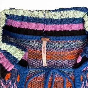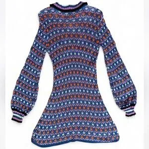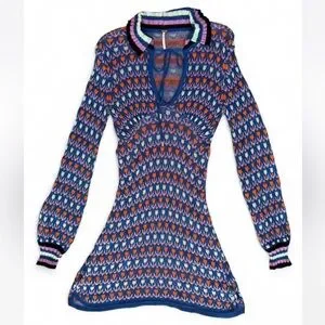 Free People x Revolve Milano Mini Dress in Blue Combo. Size S. Such a cutie knit dress and perfect for fall! Gently worn and no sign of wear.