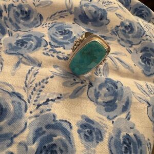 Elegant turquoise ring set in silver, perfect for adding a pop of color to any outfit. SIZE 7!!
