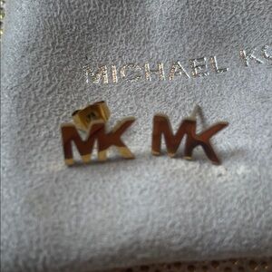 Chic gold MK logo earrings. Ideal for stylish looks. Good condition. Just missing one back