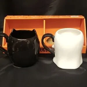 Lang NWT, NIB Set of 2 Halloween Mugs, Black Kitty Vampire and Ghost