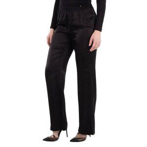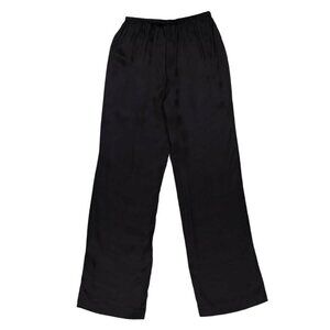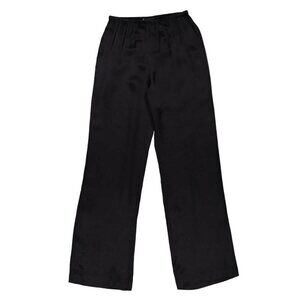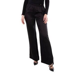Anine Bing Ladies Black Aden Wide Leg Pants. These Aden pants feature a high-waisted, wide-leg design with an elasticated waistband, offering a relaxed fit for comfort and style. 62% silk, 38% viscose.