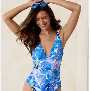 NWT Tommy Bahama Palm Modern Palma Mare Navy V-Neck One-Piece Swimsuit Size 16