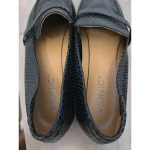 Vionic Zana Black Leather Lizard Loafers Size 8.5
